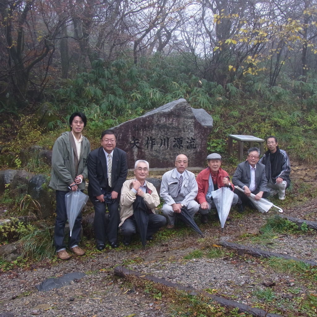 最初は愛知県境の茶臼山へ、この山が矢作川の源流になるそうです。昨日の夜は矢作川明治用水の事務局長さんと飲み明かし、源流の根羽村と明治用水のある安城市の結びつきを話してくれましたが、道の途中には安城のライオンズクラブの方々が植樹したもみじが紅葉していて、上流と下流の強い結びつきがうかがえました。村長さんから頂いた名刺に、森林整備協定(上下流協定 愛知県安城市)全国第一号の村という文字が誇らしく掲げてあったのを思い出しました。
