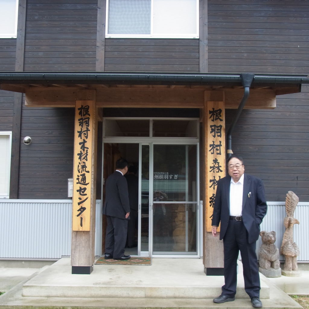 次に向かったのは根羽杉で有名な根羽村森林組合、昨日のお話の中で、松本の川上先生という設計家のお名前が出ました、川上さんは私も良く存じ上げていますが、松本の縄手通り商店街を作る際、根羽杉に着目し、商店街で使う木を全て根羽杉で誂えたということで、松本との縁を深く感じました。