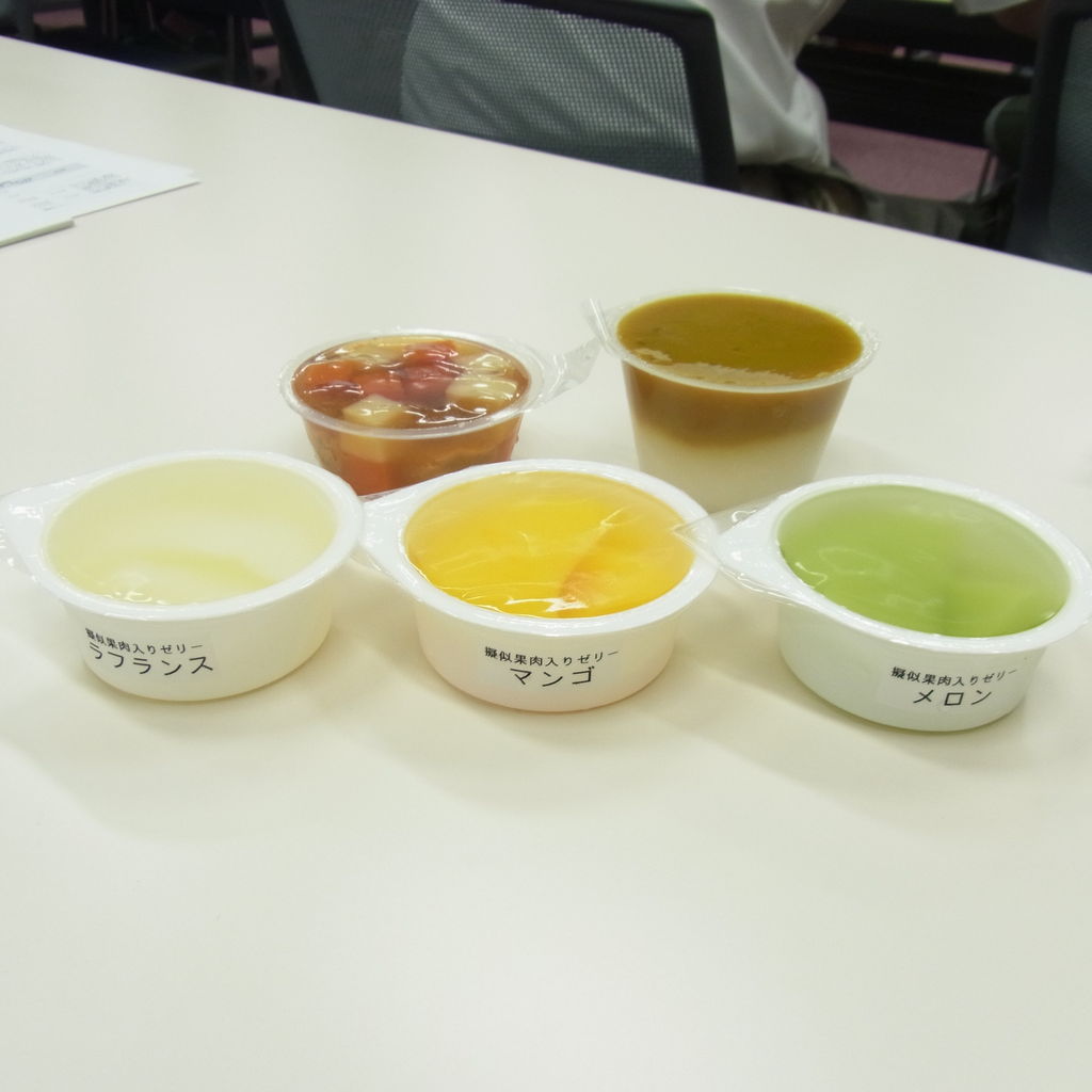 ゲル化剤、増粘剤(キサンタンガム、カラギナン等)を駆使して介護食を研究している先生が、様々な味や食感、香り、を自由に演出できる?技を披露してくれました。