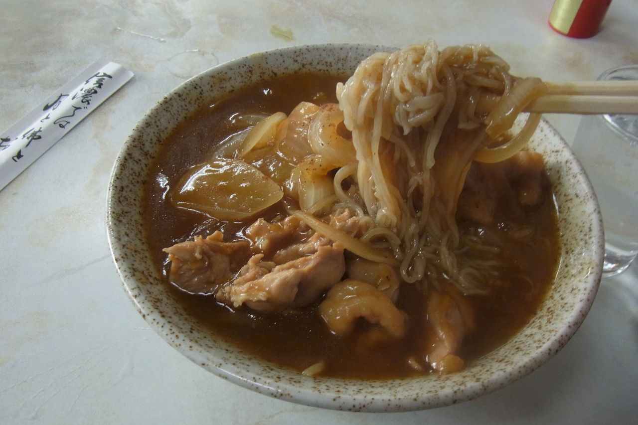 カレーうどんなら気にならないが、手打の美味しいそばを使う場合、早く食べないと熱いカレー汁の中でそば自体が溶けて無くなってしまう?こと。