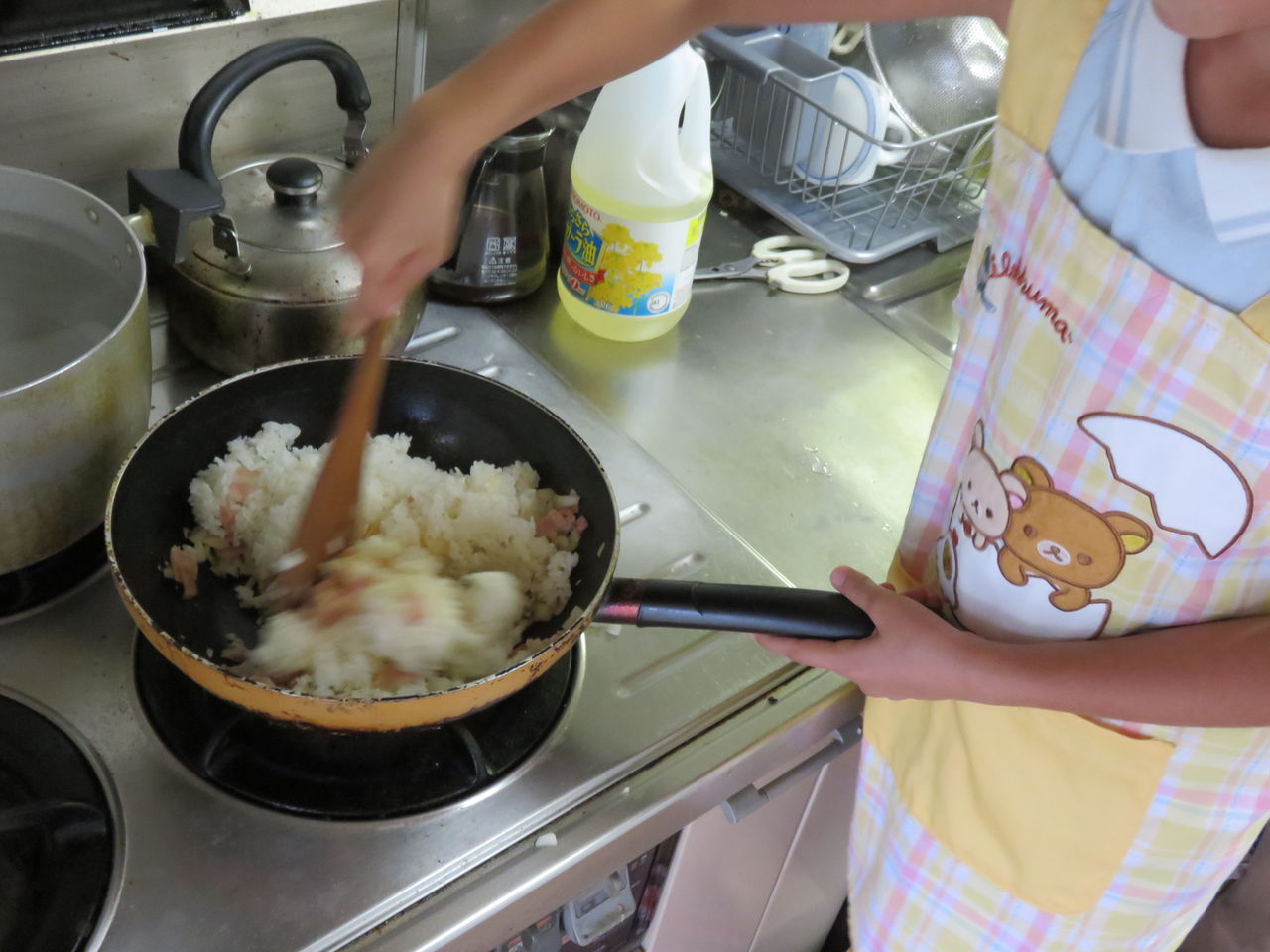 遂に完成、パラパラなチャーハンという訳にはいきませんでしたが味付けも許せる範囲で爺も満足でした。