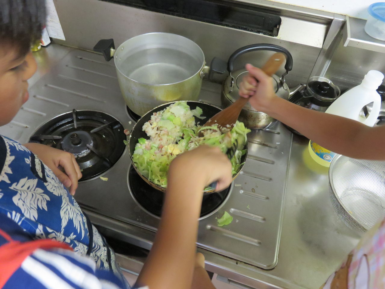 一丁前に料理本を見ながらチャレンジするのは「レタスチャーハン」