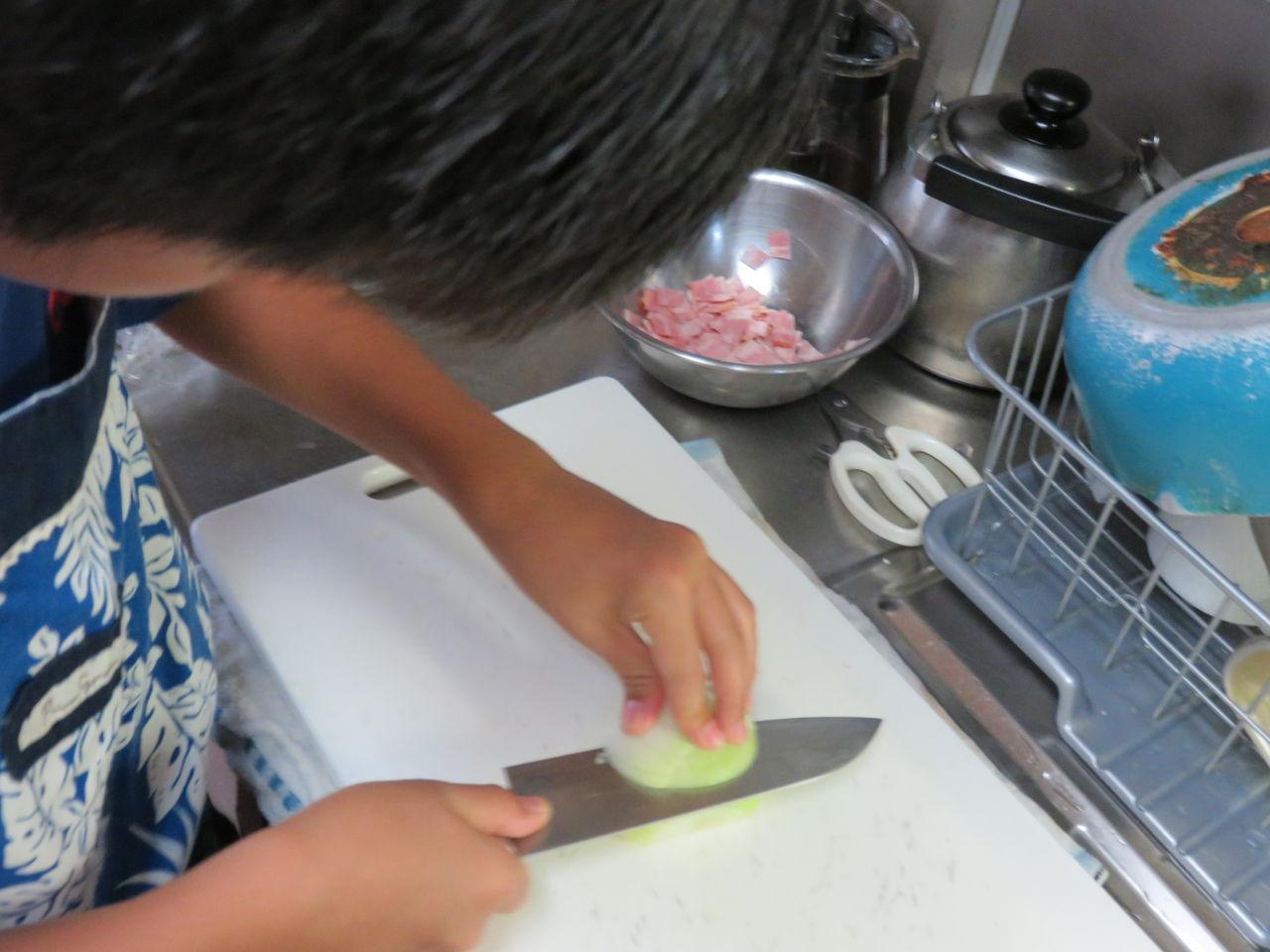 おっかない手つきで玉ねぎのみじん切りに挑戦!