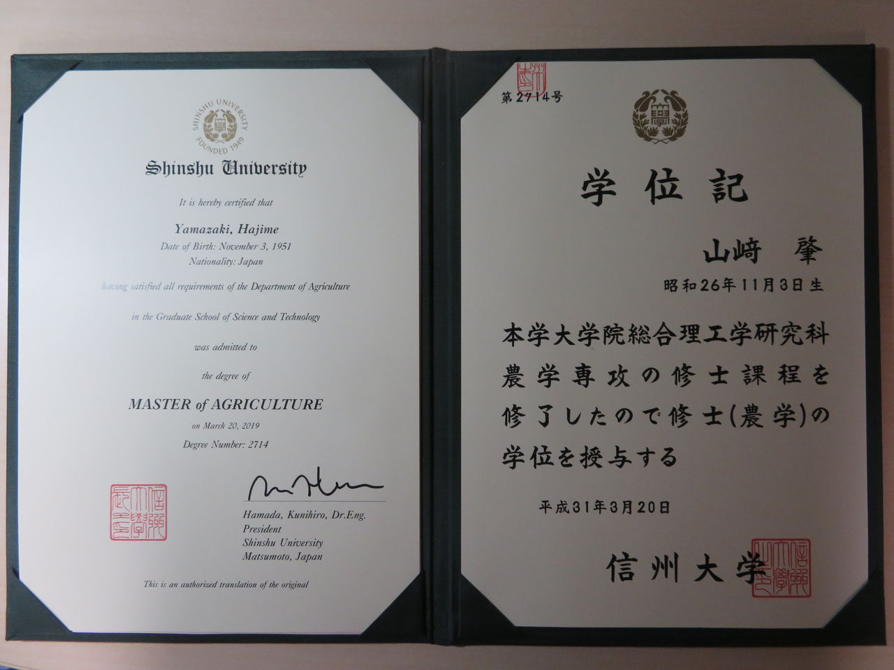 その後、私は無事信州大学農学部修士課程をクリア!