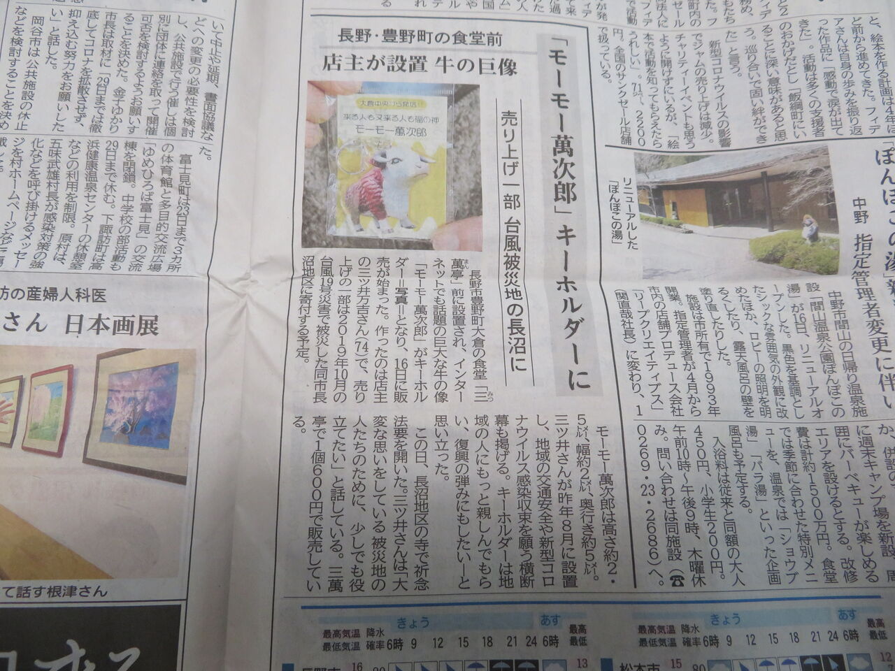 家に帰ってから新聞で知りましたが、この牛のキーホルダーを店の人が作って2019年の台風19号被災者への援助をするとか。