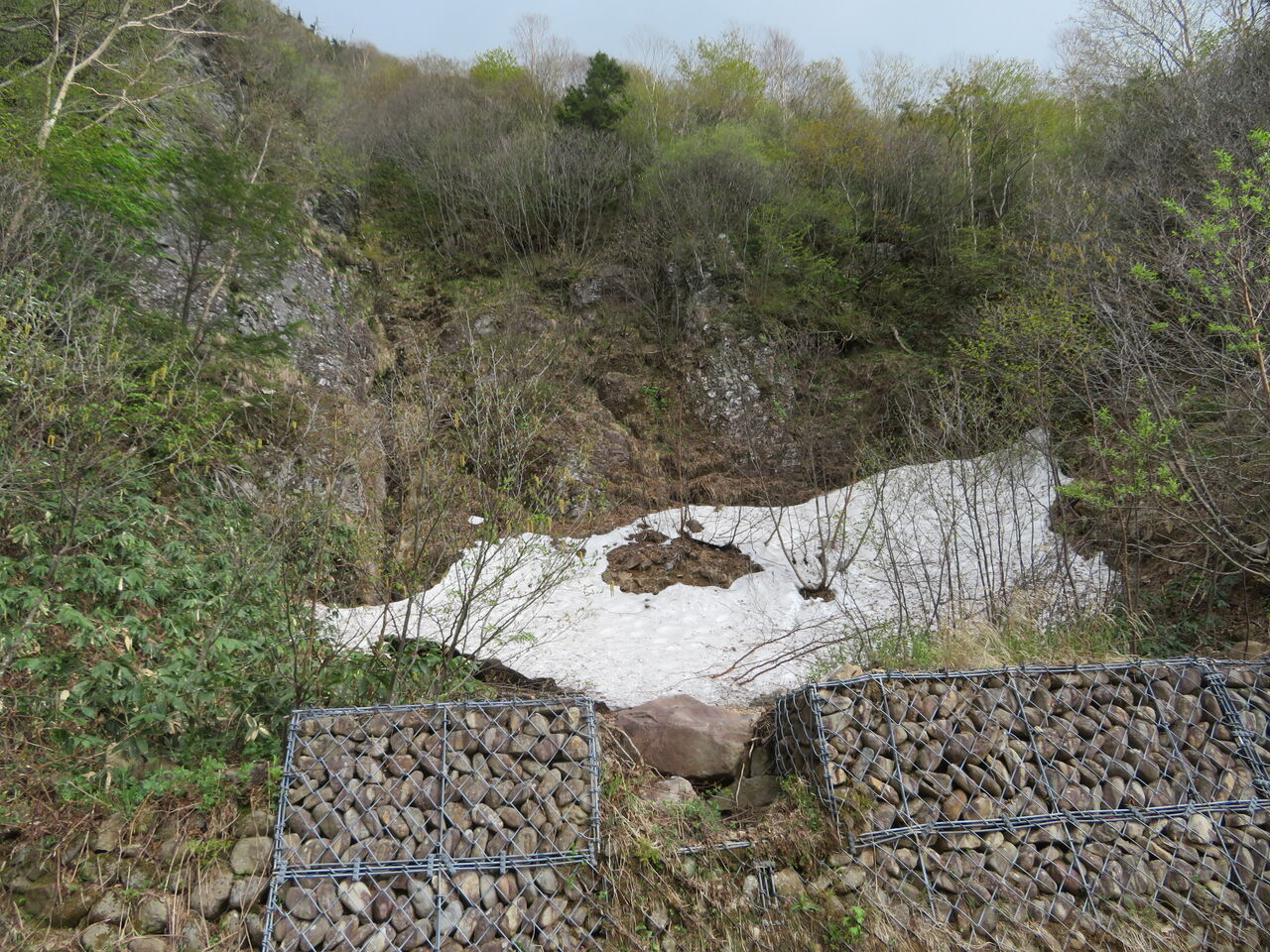 熊の湯方面に下っていくとここにも残雪、4月には踏み込めなかった所です。