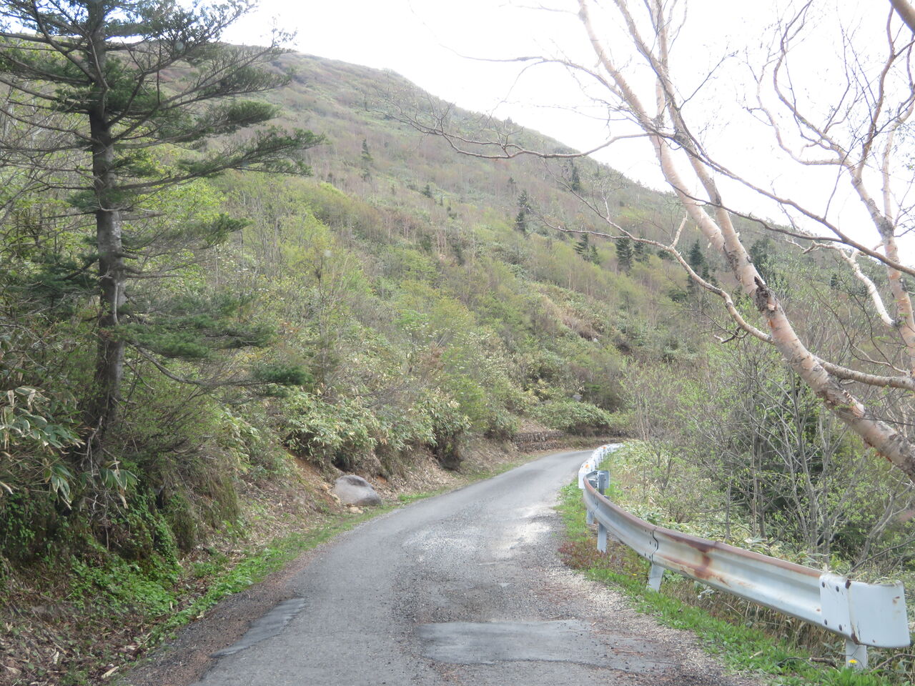 笠ヶ岳の麓に走る県道の佇まいはまさしく峠