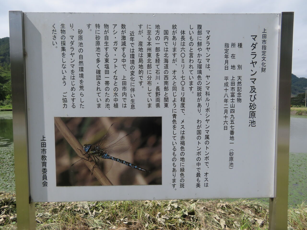 そして天然記念物マダラヤンマの生息地だそうです。オスは腹部に瑠璃色の美しい斑紋があります。