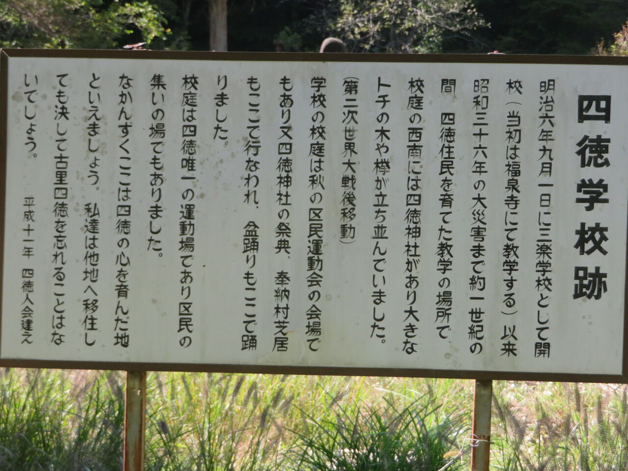 そんな記念碑的案内「四徳学校跡」