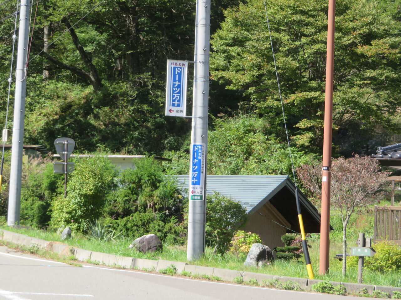 長谷、杉島名物ドーナツ万十の看板を横目に見て、