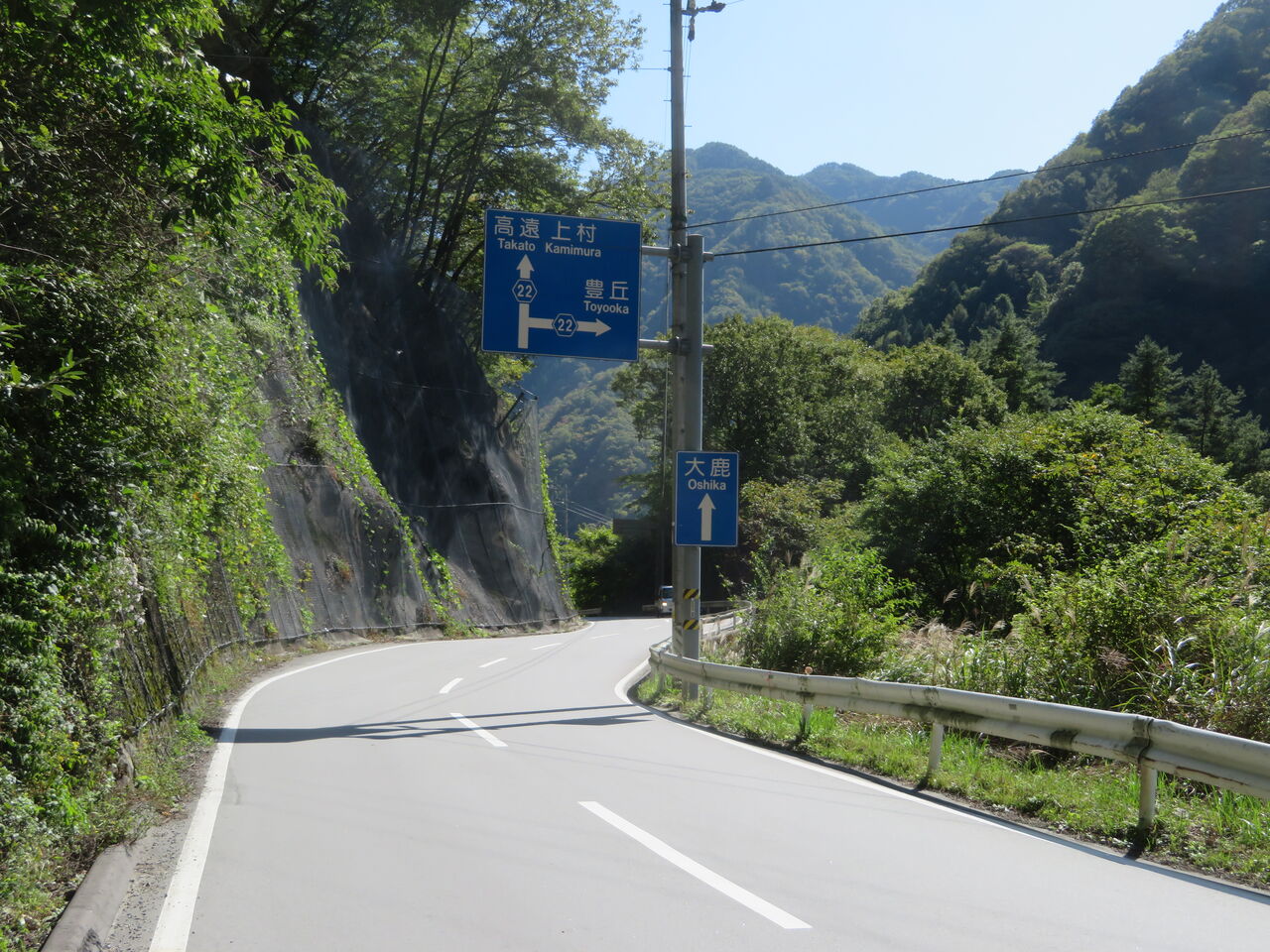 ダンプが2台前を走っていたためイライラしましたが、もう一度大鹿方面へ、途中で豊丘方面へ、県道22号線、右折です。