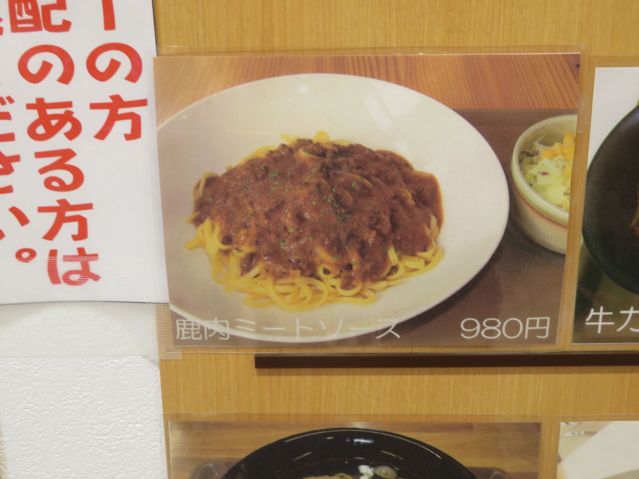 大鹿にちなんで鹿肉ミートソース(サラダ付き980円)