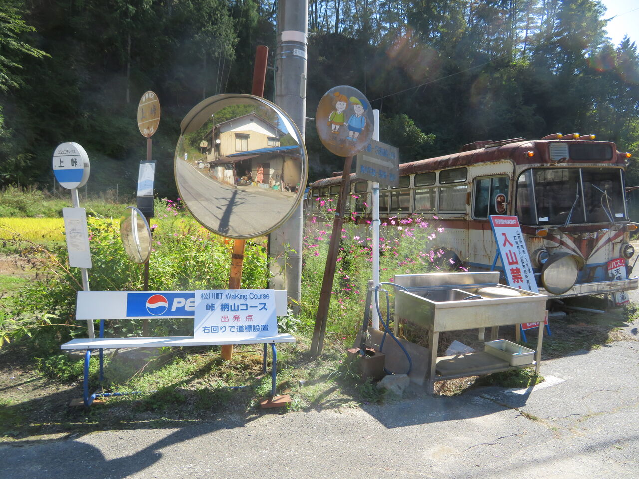 少し下った集落の脇にありました。何と「上峠」バスストップ。