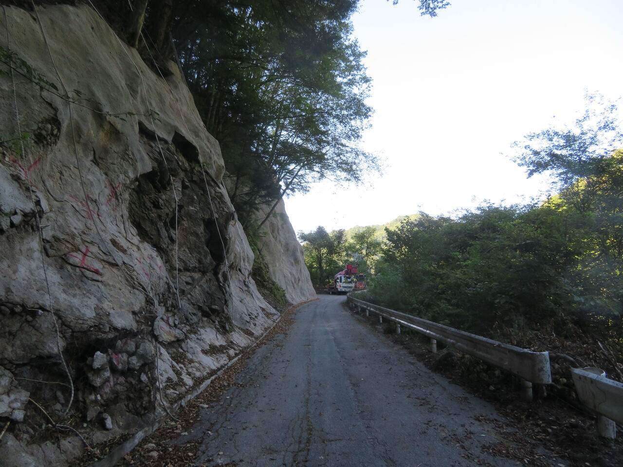 県道はこんな道、OH!工事中、しかし工事の方が「土日は通っても良いよ」と請け負ってくれました。