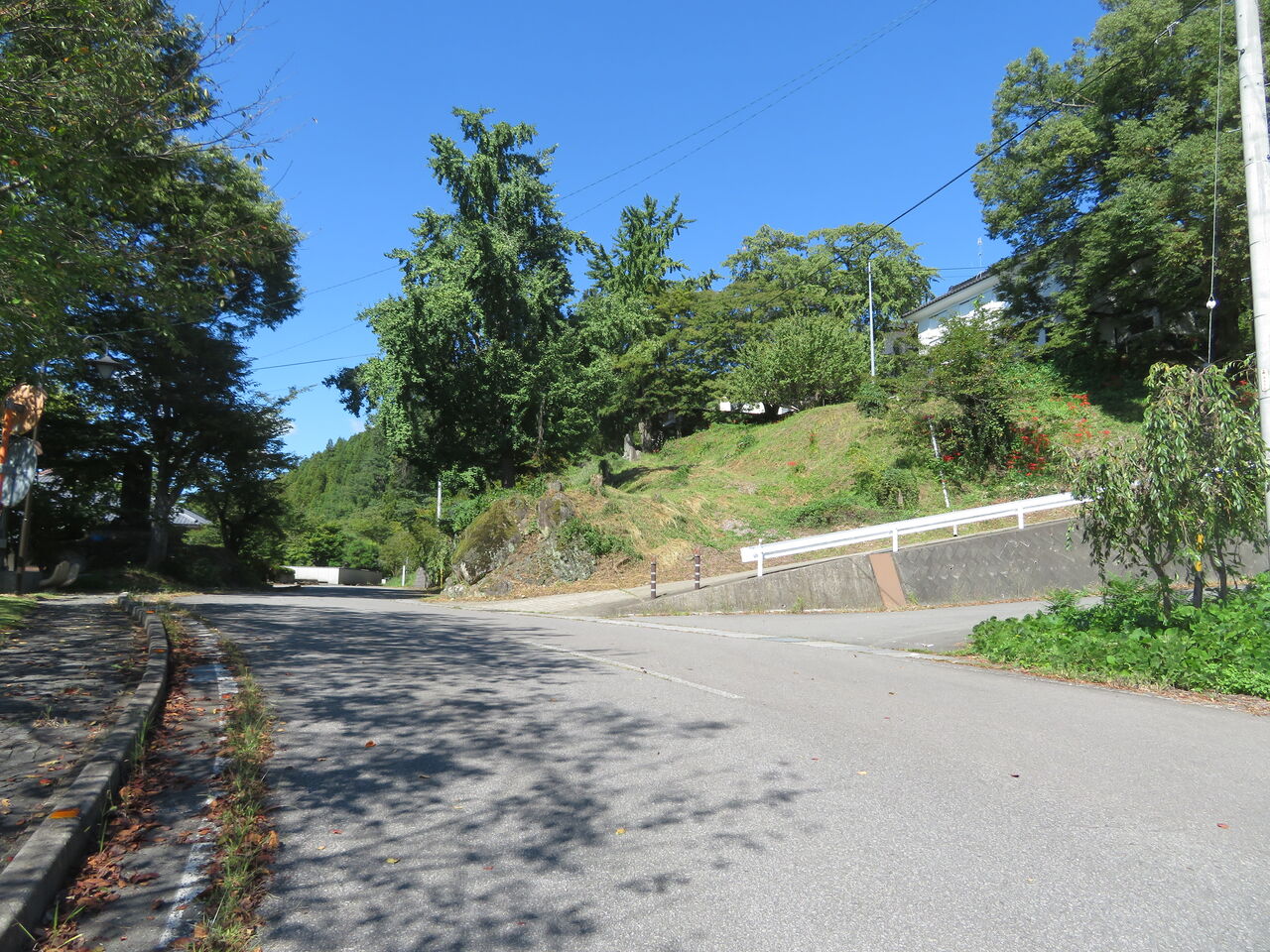 峠の先にはすぐに人家、犬の吠え声もします。