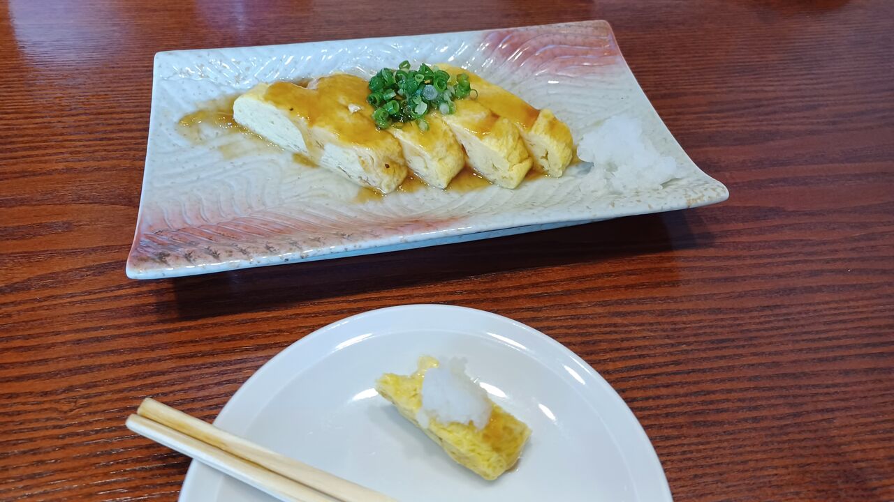 玉子焼きはとろみのあるたれがかかっています。