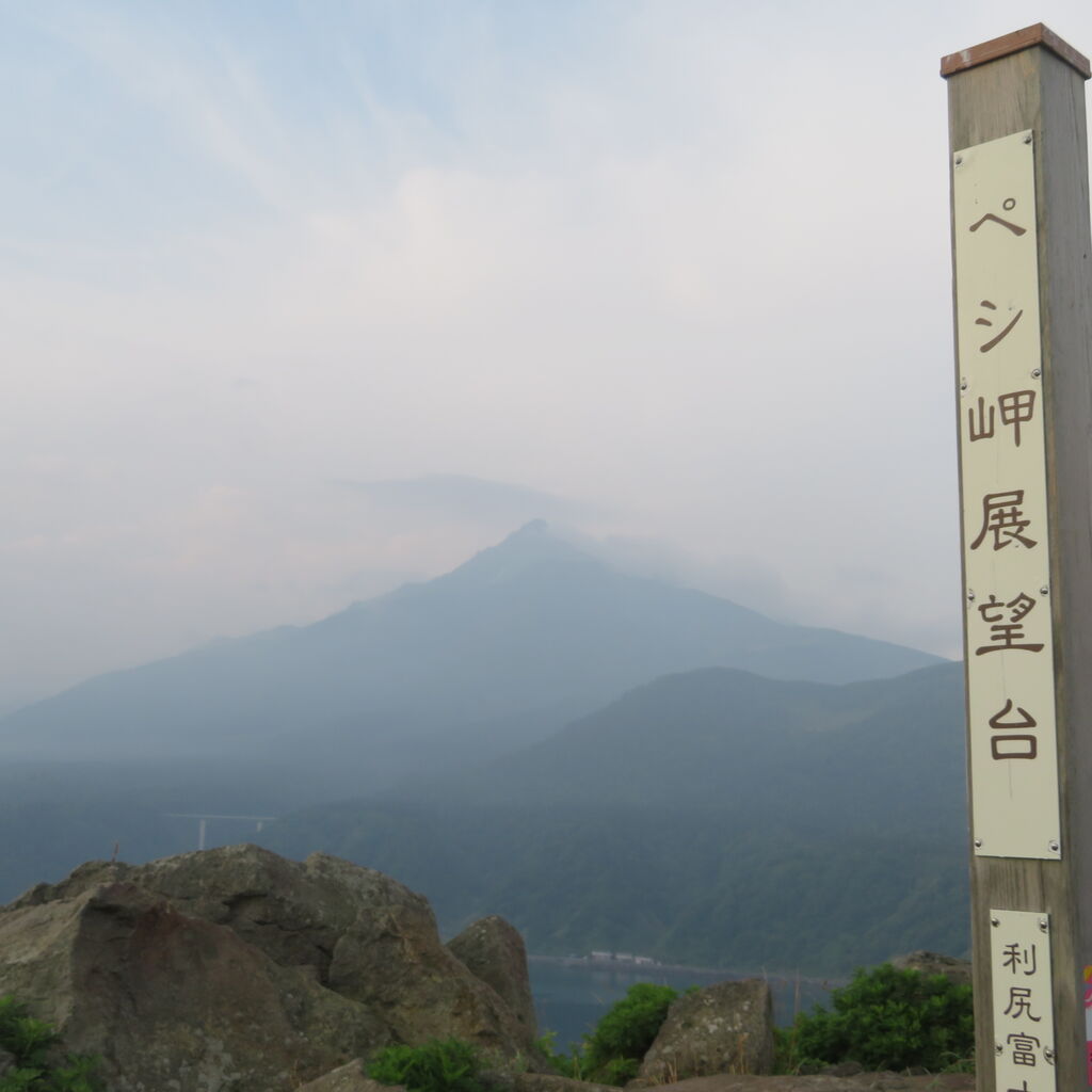 そこから急傾斜を登るとペシ岬頂上、利尻岳の頂上が雲に隠れはじめました。