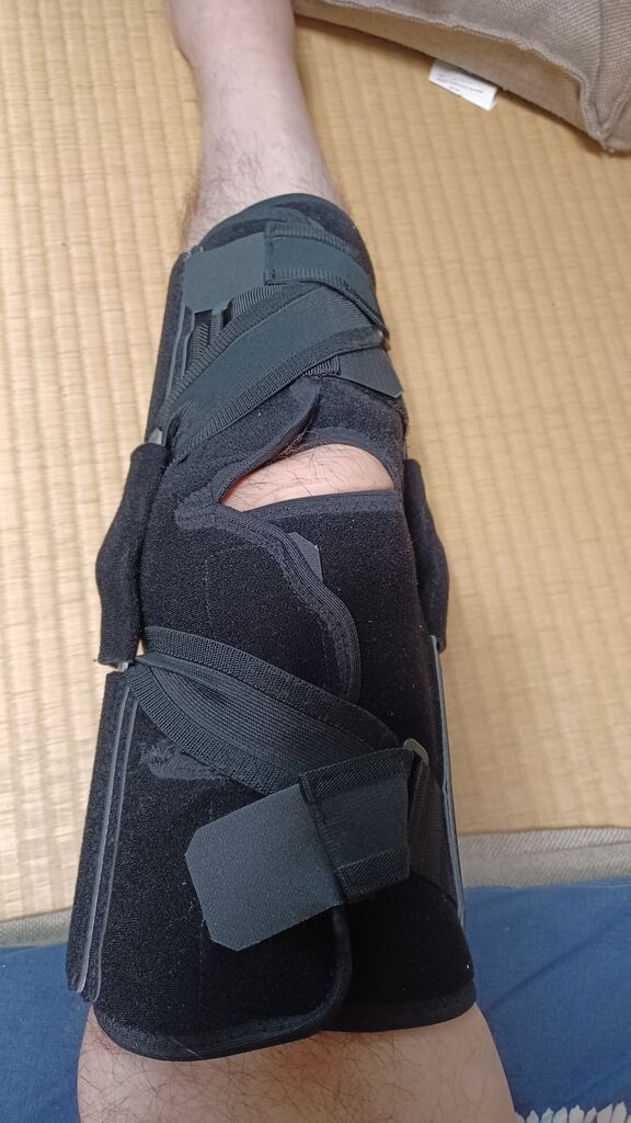 ここで私は不覚をとりました。回遊できる間を歩いていて足を滑らせ右足膝の筋を伸ばしてしまいました。それによって20日後の今日でも人工関節?? 最低3週間はこのサポーターを外せません。暑い盛りですが風呂にも入れずシャワーのみ。