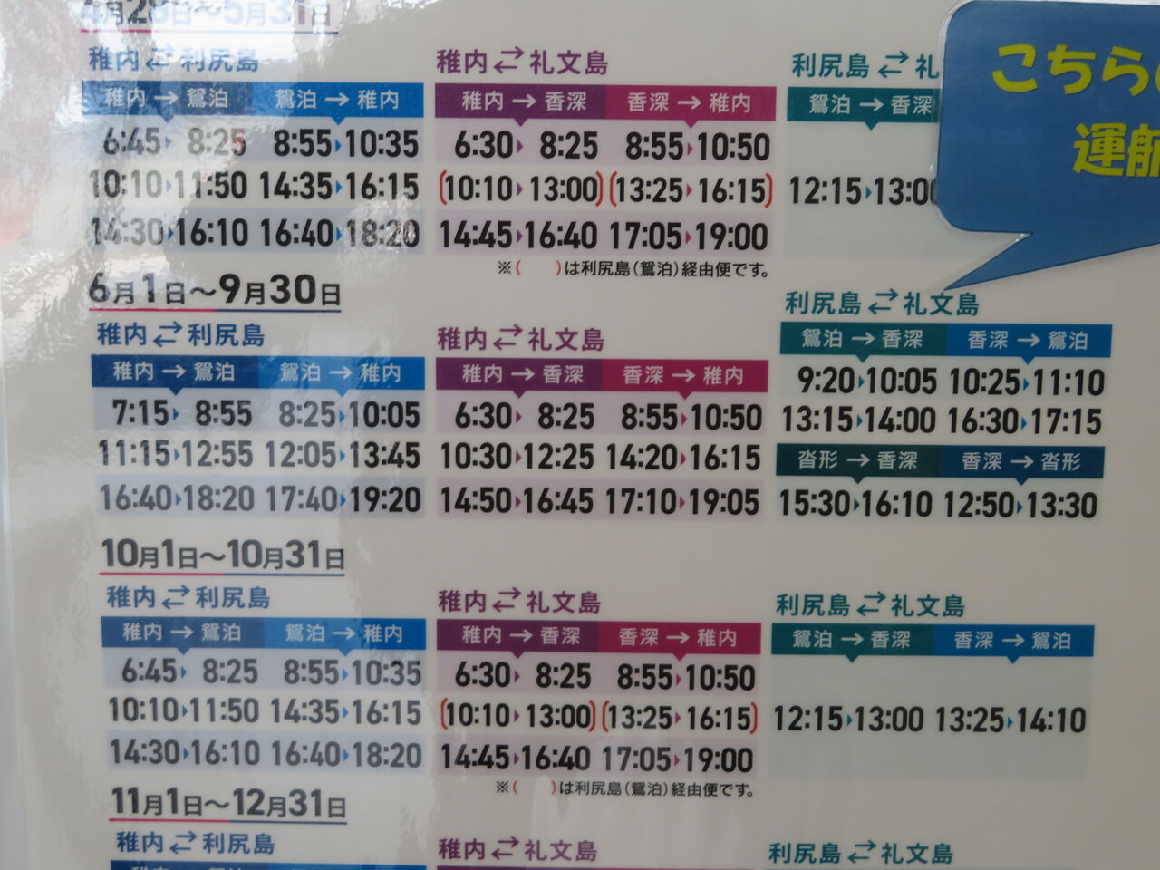 レンタカーを返し、昼食も食べ、膝の手当てのために薬屋さんを探しシップ薬を買い求めて礼文島へ、