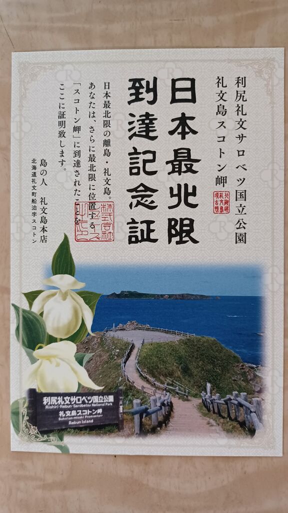 日本最北限到達記念証