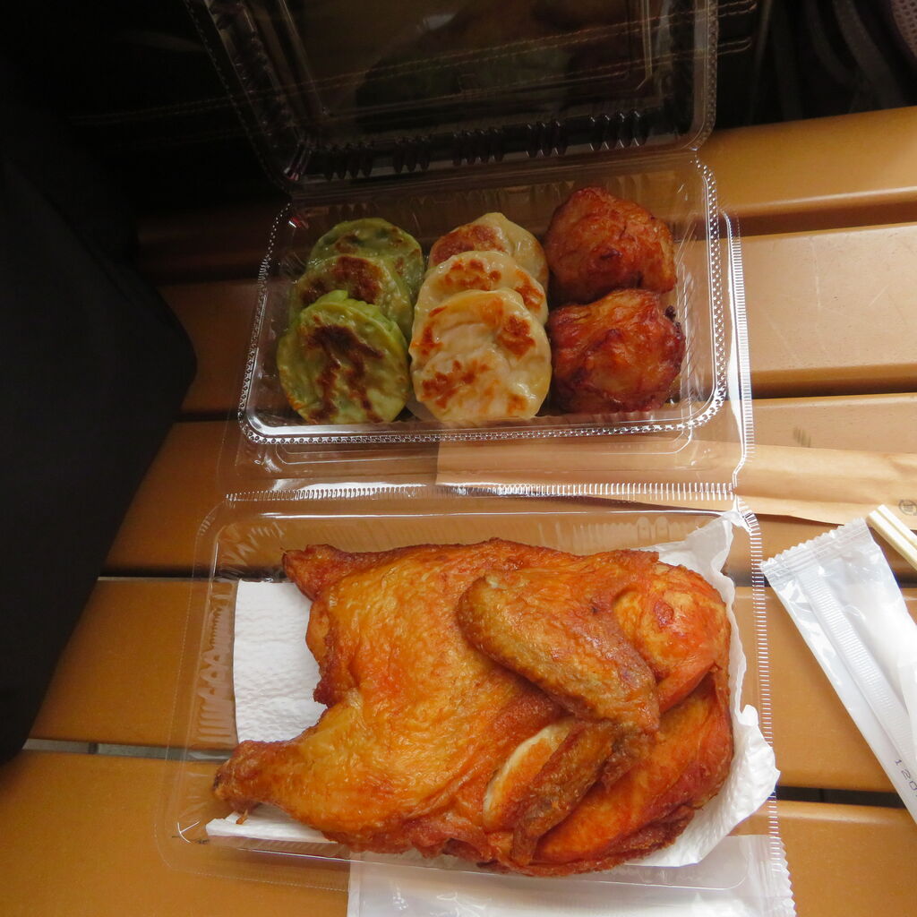 中札内田舎どりの半身揚げ、行者ニンニク饅頭そしてエビジャガ。