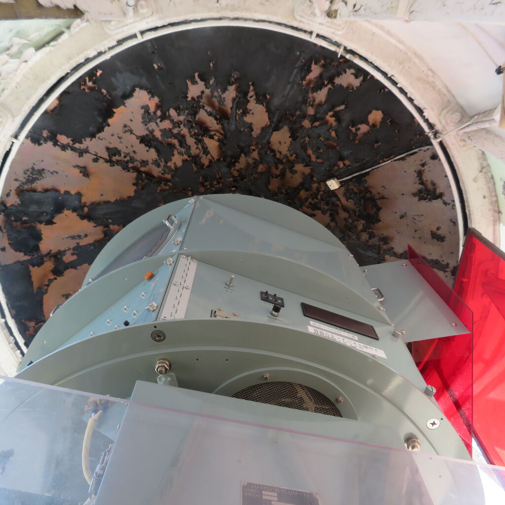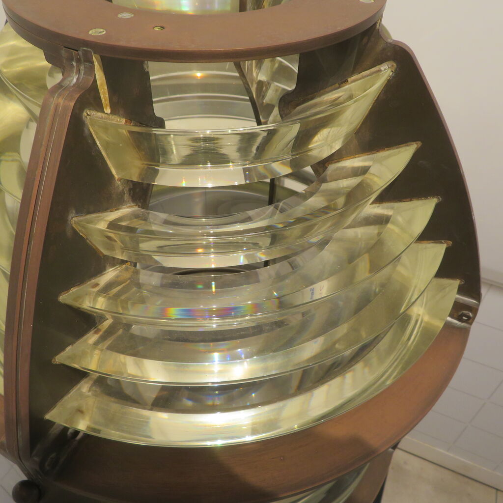 このレンズはフレネルレンズといって遠くまで光を届けるため精妙な角度に作ってあります。
