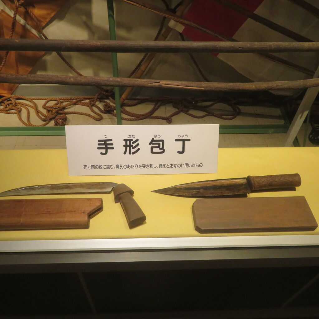 銛を打った鯨に飛び乗りとどめをさした手形包丁