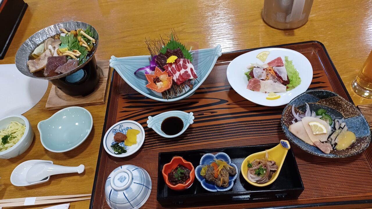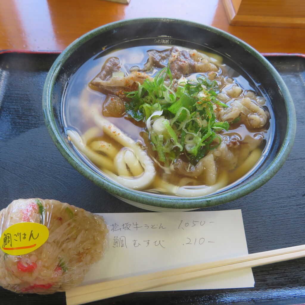 松坂牛うどん(1050円)と鯛むすび(210円)