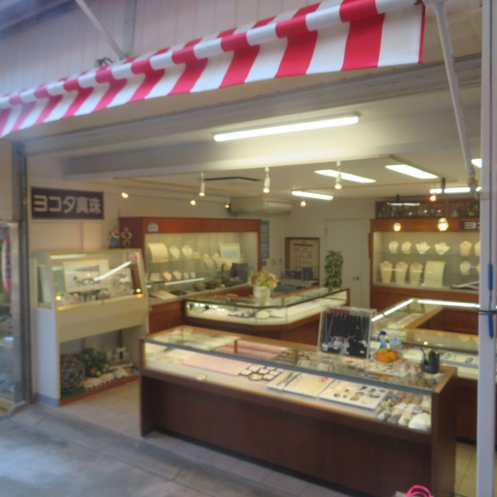 岬へといざなう遊歩道には真珠などの宝石店が、