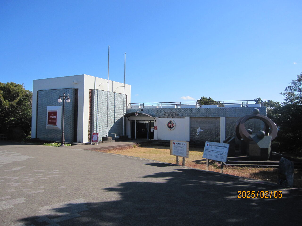明治23年、ここ大島の樫野埼海岸に日本との親善のため来日したトルコ海軍のエルトゥールル号が帰途で難破。587名が殉職、島民の救助もあって69名が助かりました。