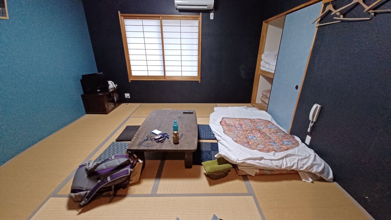 夕暮れということで宿は「お宿喜作」御坊市にあります。今日は私一人の貸し切りだそうです。