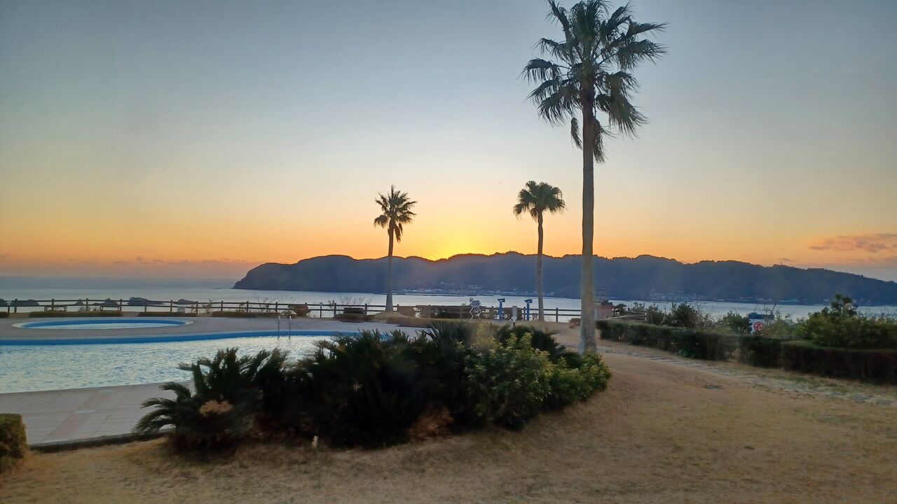 宿から紀伊大島越しに昇る朝日、