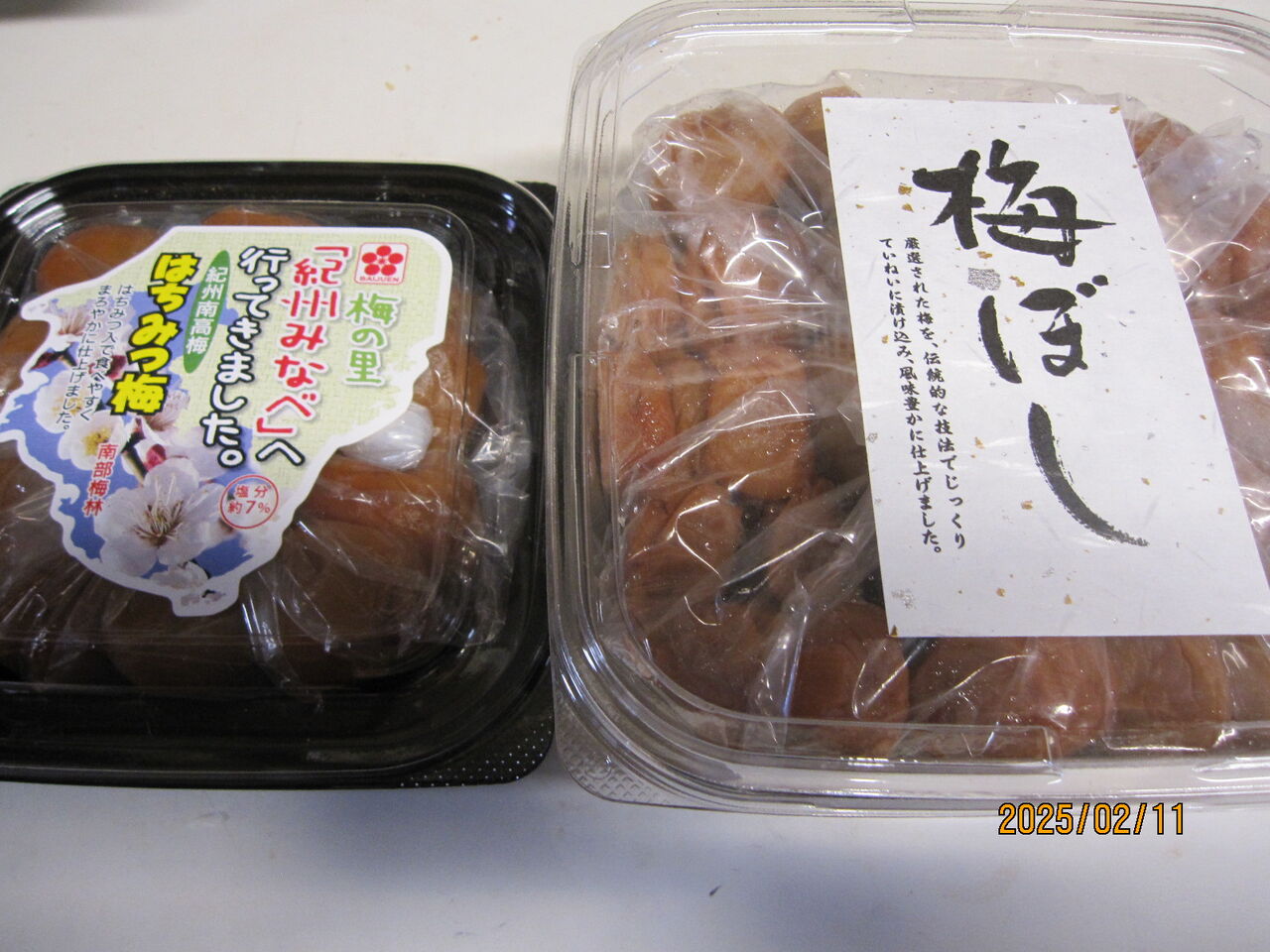 塩漬けだけの梅干しが1㎏で1000円、食べやすいはちみつ梅は250gで1000円でした。