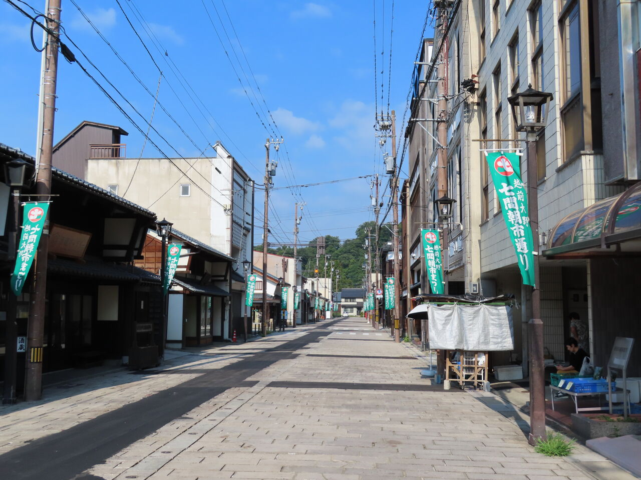 この町の名物七間朝市は閑散としています。