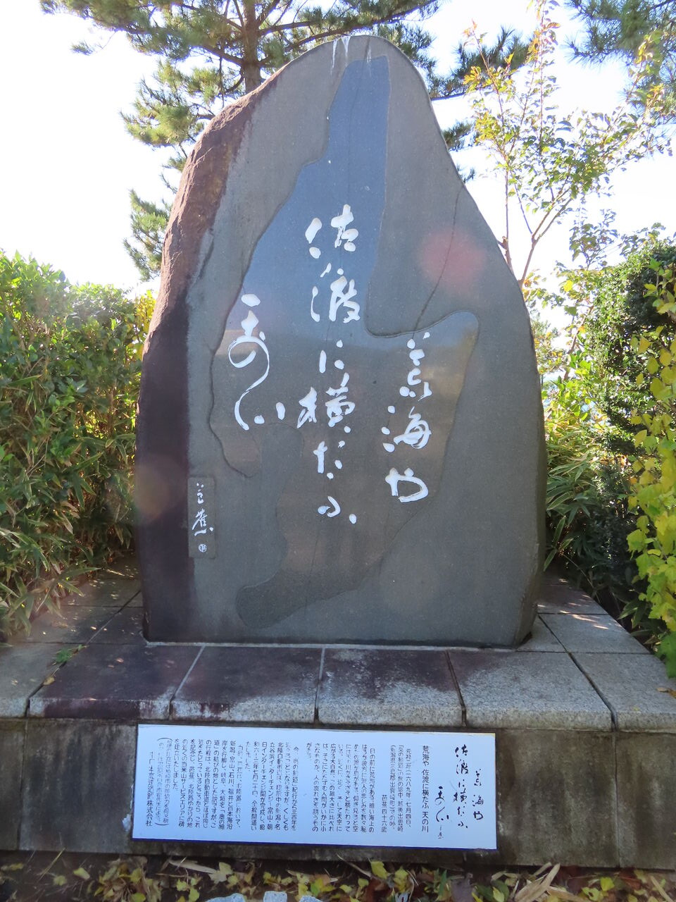 荒海や佐渡に横たふ天の川、芭蕉の句碑。