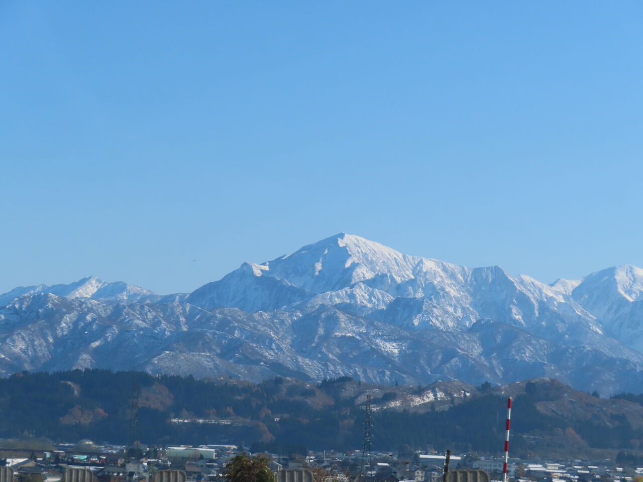 後立山連峰もくっきりと雪が縁取り素晴らしい眺め、