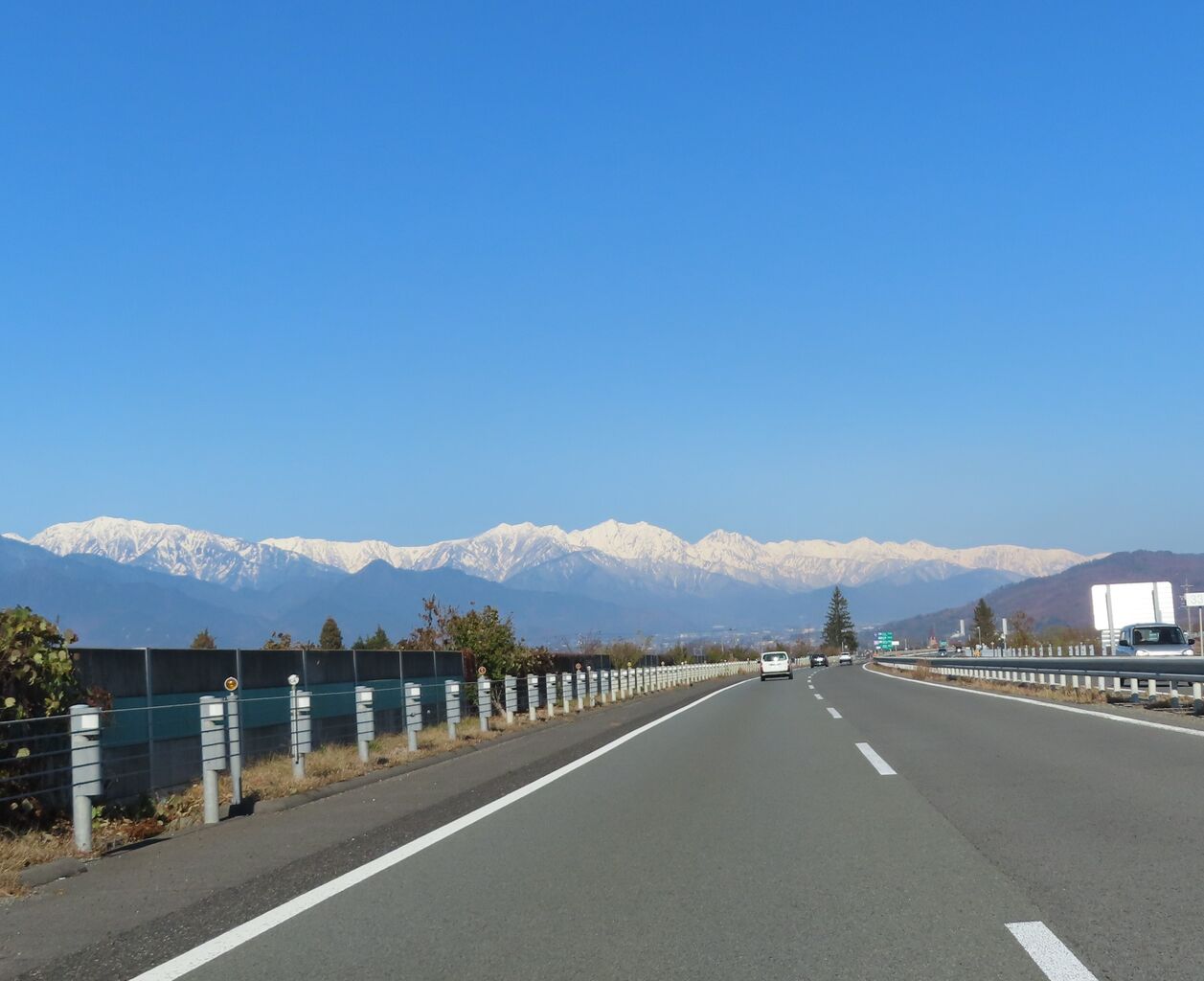 関越道に入りしばらく進むと越後三山の雄姿が、