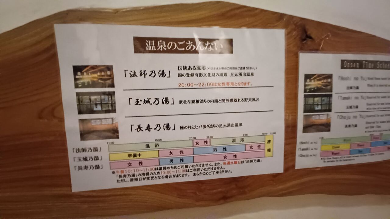 それぞれ時間によって男女の入れ替えがありますが、法師乃湯だけは混浴の時間が。