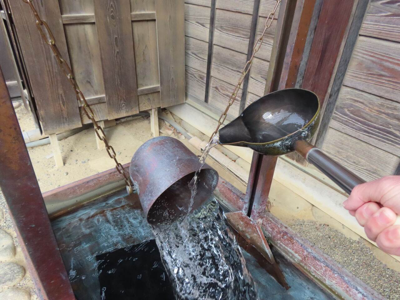 器が空の時は傾き、ちょうどよい時はまっすぐに立ち、満杯になるとひっくり返ってしまうというもの。
