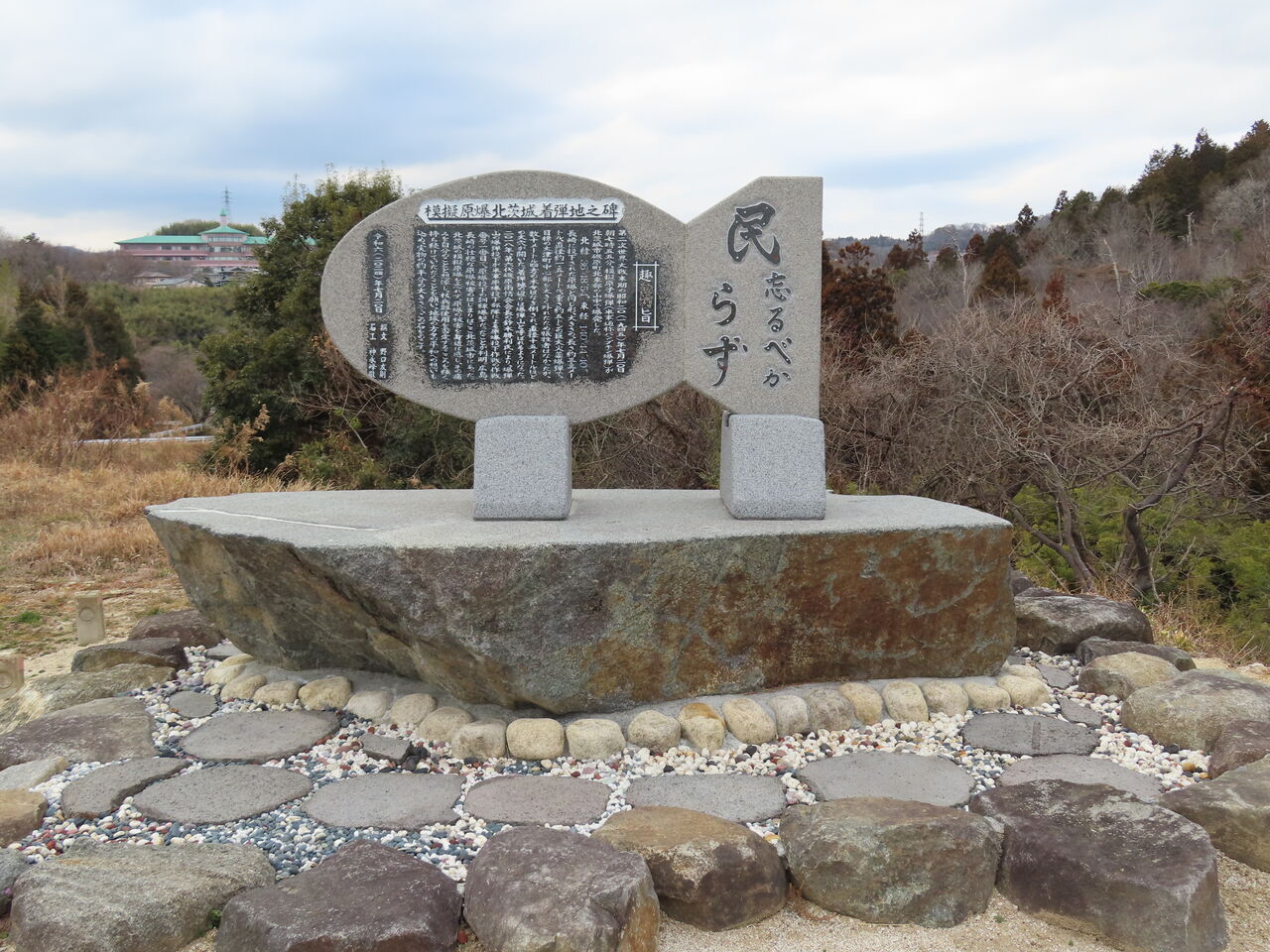 茨城県の海岸沿いは今回ですべて周りたいもの、ただ足跡を残すだけではもったいないので目標を探したところ見つけたのが模擬原爆着弾地の碑。
