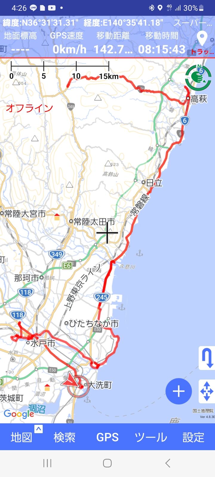 走行距離は141km、見学が多かったので距離は稼げませんでした。
