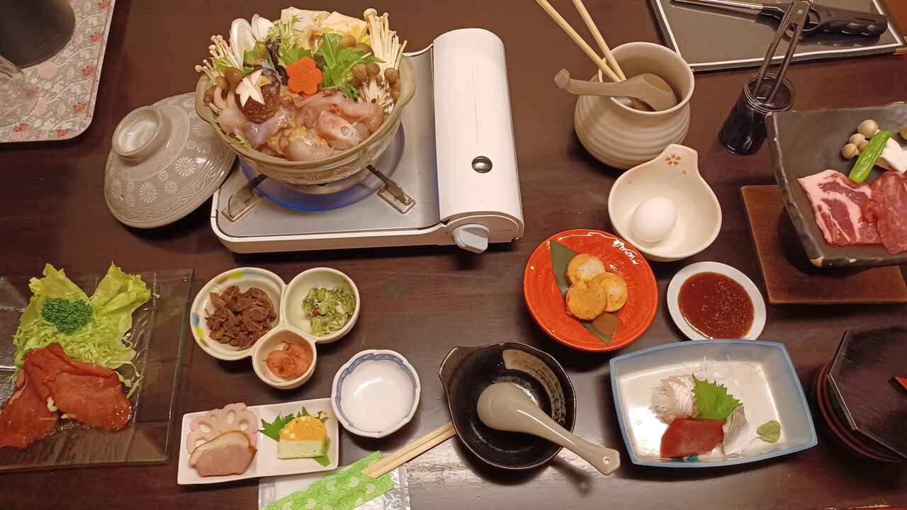 宿の一押しがアンコウ鍋、大きな鍋で満腹。