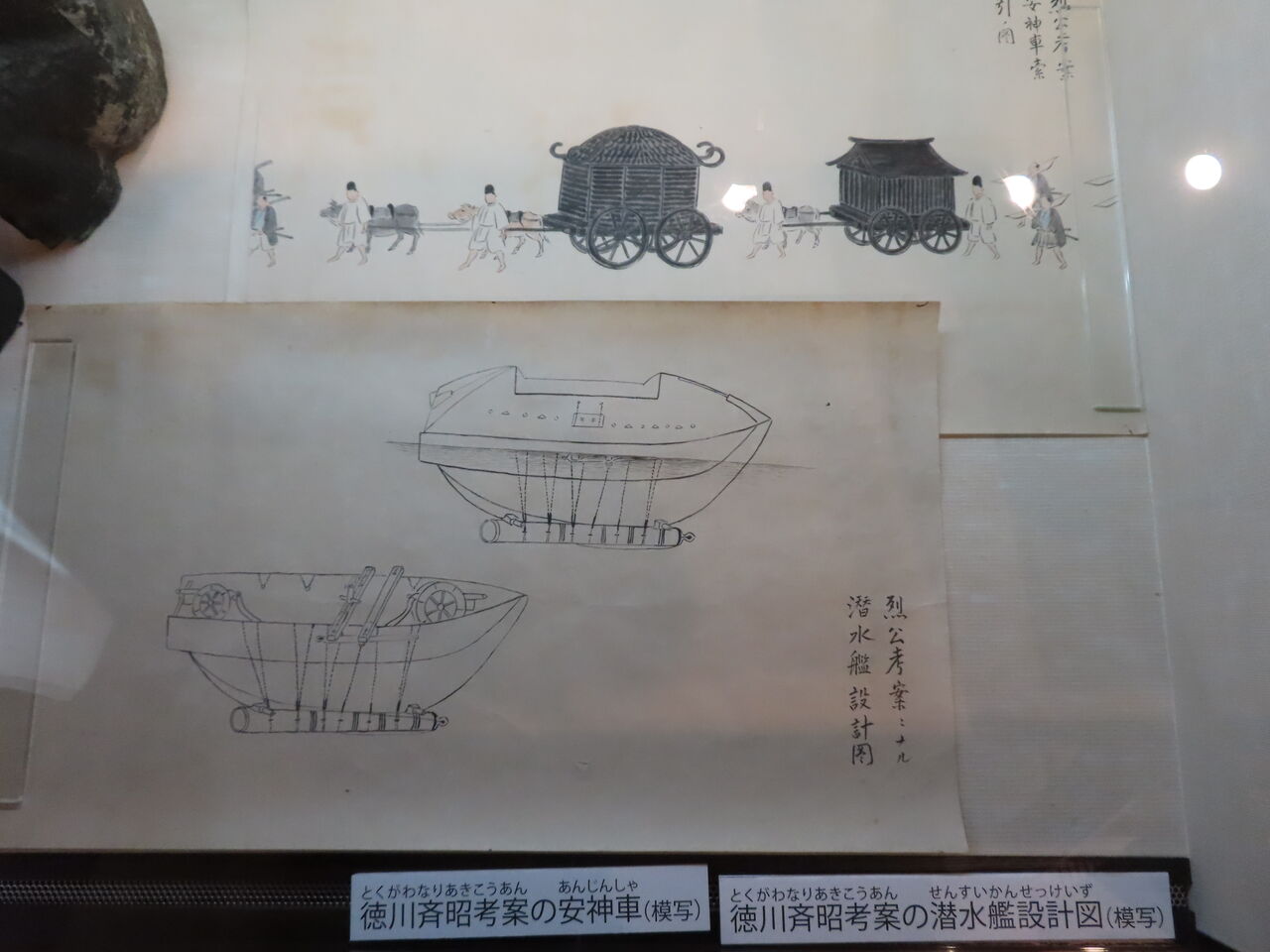斉昭が考案したという安神車(鉄製の戦車)や潜水艦。