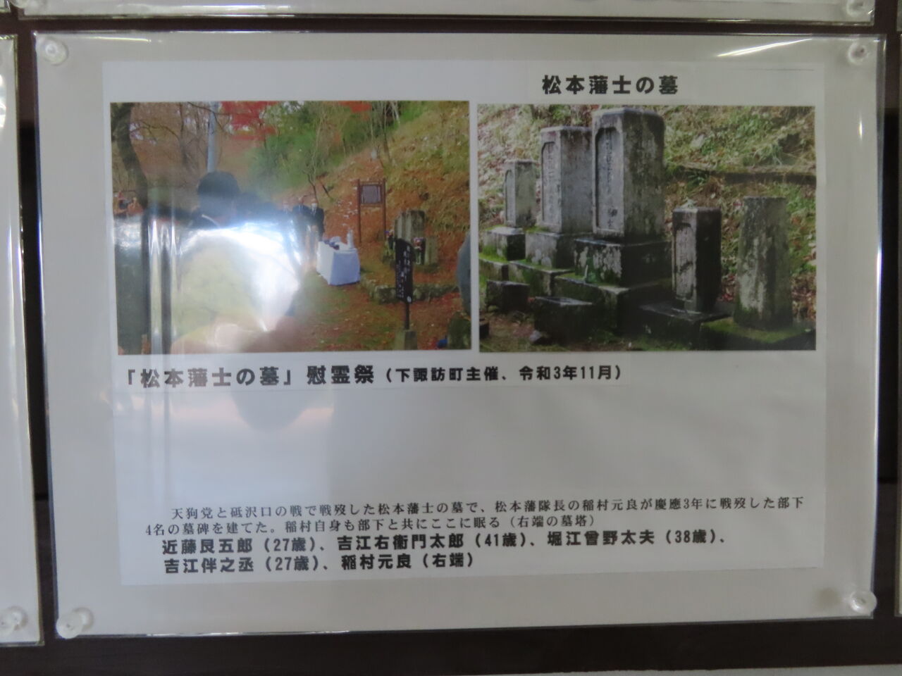 和田峠の合戦で亡くなった松本藩士の墓の写真もありました。