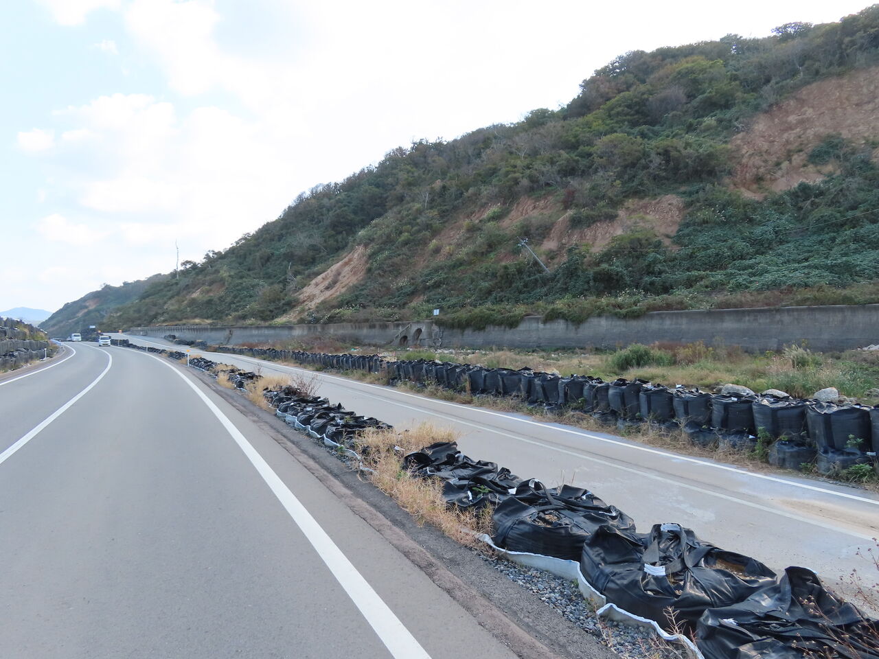 何と車道脇を熊の仔が一目散! 慌てて車を停めてパチリ。