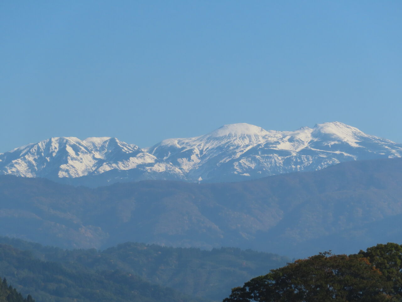 谷川岳の双耳峰、トマの耳とオキの耳も雪でくっきり、